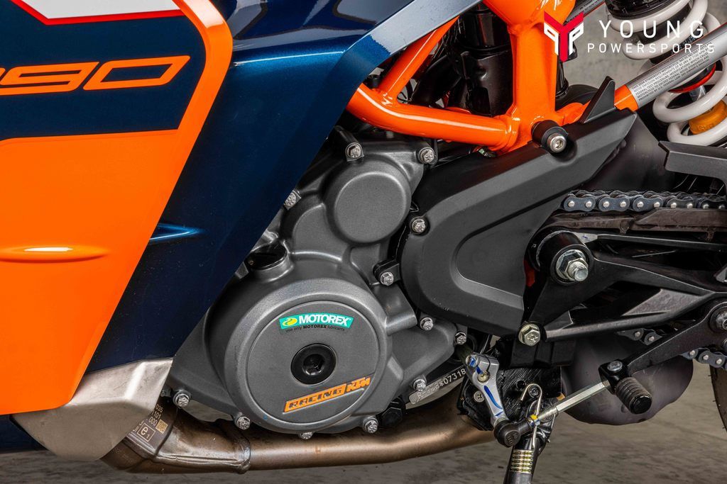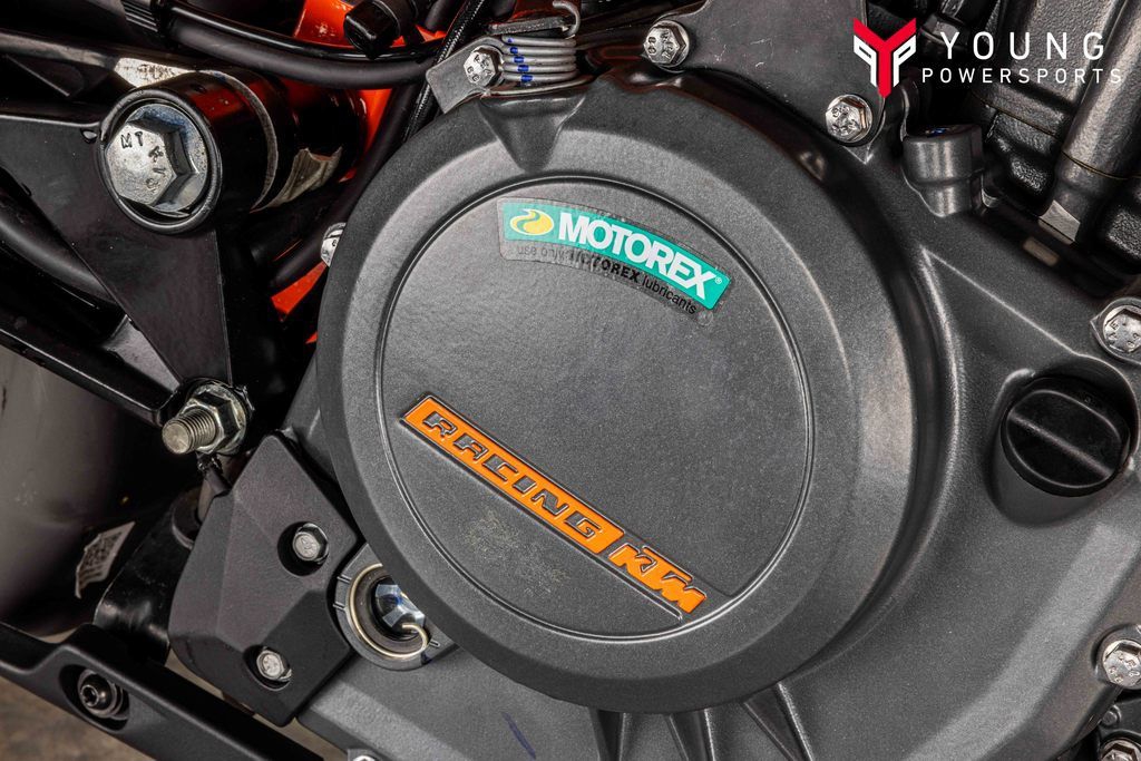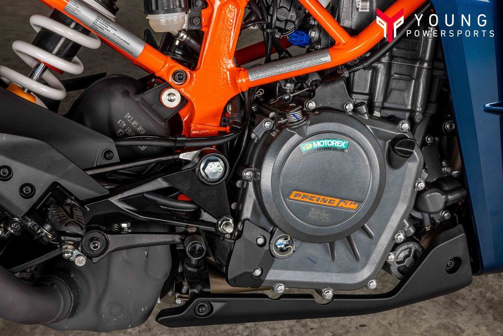 ENGINE & EXHAUSTThe KTM RC 390 uses the proven 373 cc liquid-cooled, single-cylinder four-stroke engine to maximum effect. Revised engine mapping, improved torque figures, and smoother, hard-hitting power delivery means this state-of-the-art powerplant churns out unmatched performance.