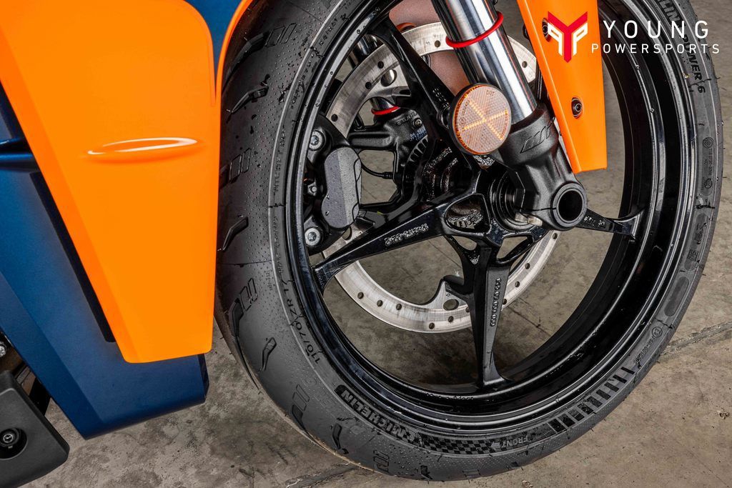 CHASSISAn ultra-lightweight frame design saves 3.3 lbs (1.5 kg) over the previous generation, making use of a trellis frame and bolt-on subframe, which also gives the KTM RC 390 improved high-speed stability and increased rider feel. The result? Faster lap times.