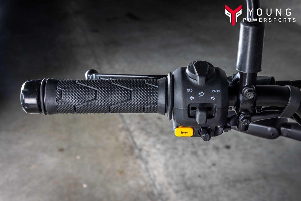 A low seat, mid-set footpegs and upright stance. The Guerrilla 450’s ergonomics adapt to your riding style and enable you to handle everything, from traffic snarls to tight corners.