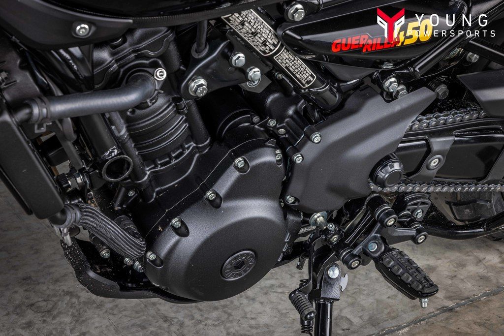A low seat, mid-set footpegs and upright stance. The Guerrilla 450’s ergonomics adapt to your riding style and enable you to handle everything, from traffic snarls to tight corners.