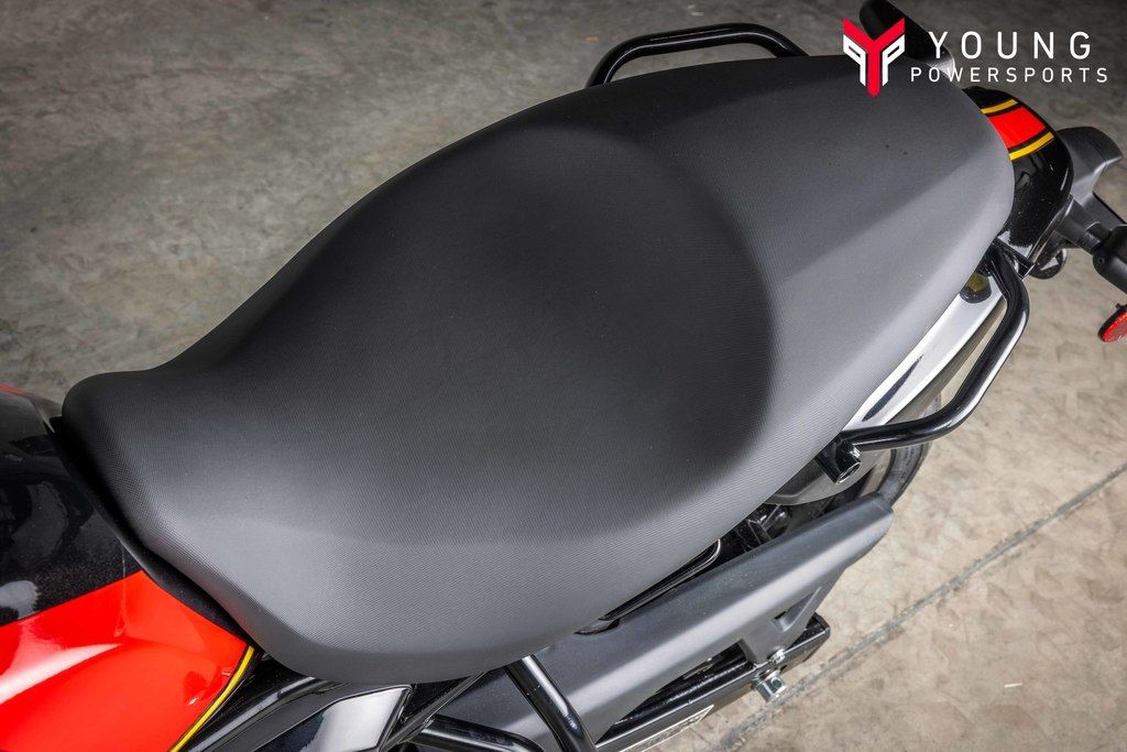A low seat, mid-set footpegs and upright stance. The Guerrilla 450’s ergonomics adapt to your riding style and enable you to handle everything, from traffic snarls to tight corners.