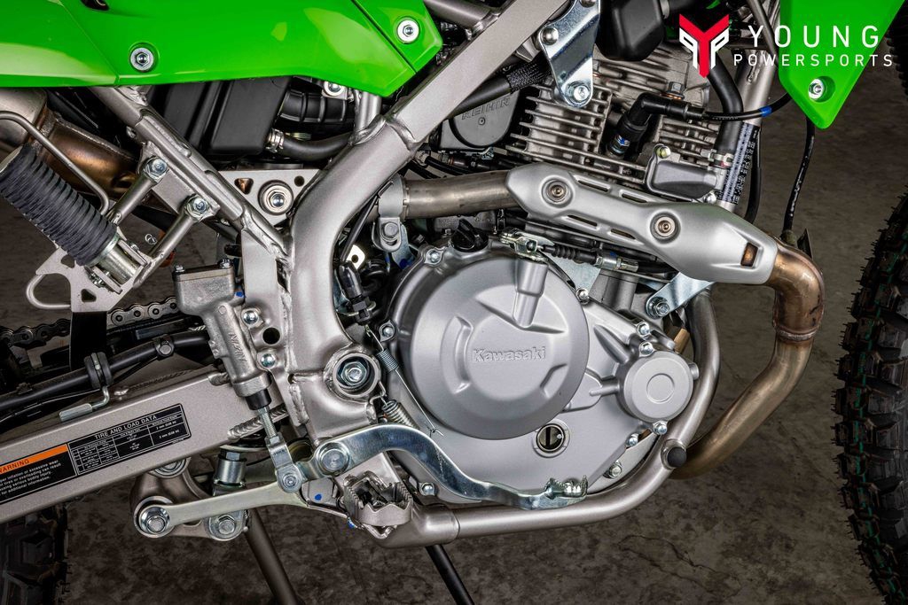 Versatility is the name of the game as the KLX®230 lineup is loaded with dual-sport tuned features. The engine and chassis were designed together to make KLX230 models as agile and lightweight as possible, while the frame, suspension, swingarm, brakes and wheels are fine-tuned for thrilling on- and off-road performance.