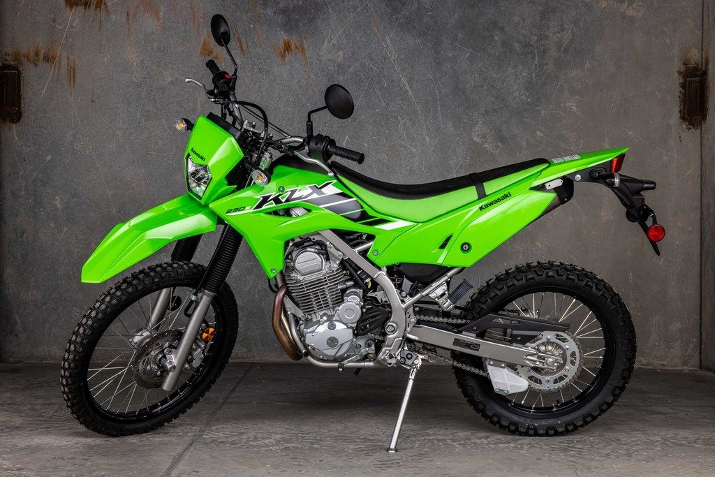 Designed with KX™-inspired ergonomics, styling and versatile dual-sport features, the KLX®230 lineup takes your adventure to new heights.