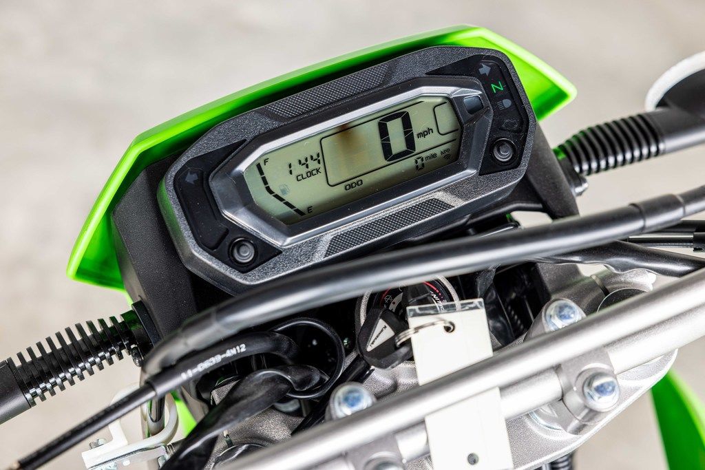 The KLX®230 S extends the playing field, allowing more riders to experience the thrill of dual-sport riding thanks to a reduced 33.3-inch seat height (34.8 inches on standard model).