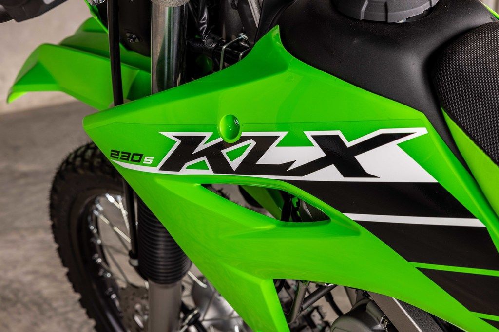 The KLX®230 S motorcycle extends the playing field with the thrill of dual-sport performance that's ready to conquer both on- and off-road. This agile bike features a quick-revving 233cc engine, lightweight chassis, long-travel suspension, and ample ground clearance for enhanced capability on the roads or trails. The KLX®230 S offers a low seat height which allows riders to comfortably reach the ground at stops for increased confidence. Turn wherever you go into the ultimate playground with the bike that delivers a thrilling ride on paved streets, dirt trails, and beyond.