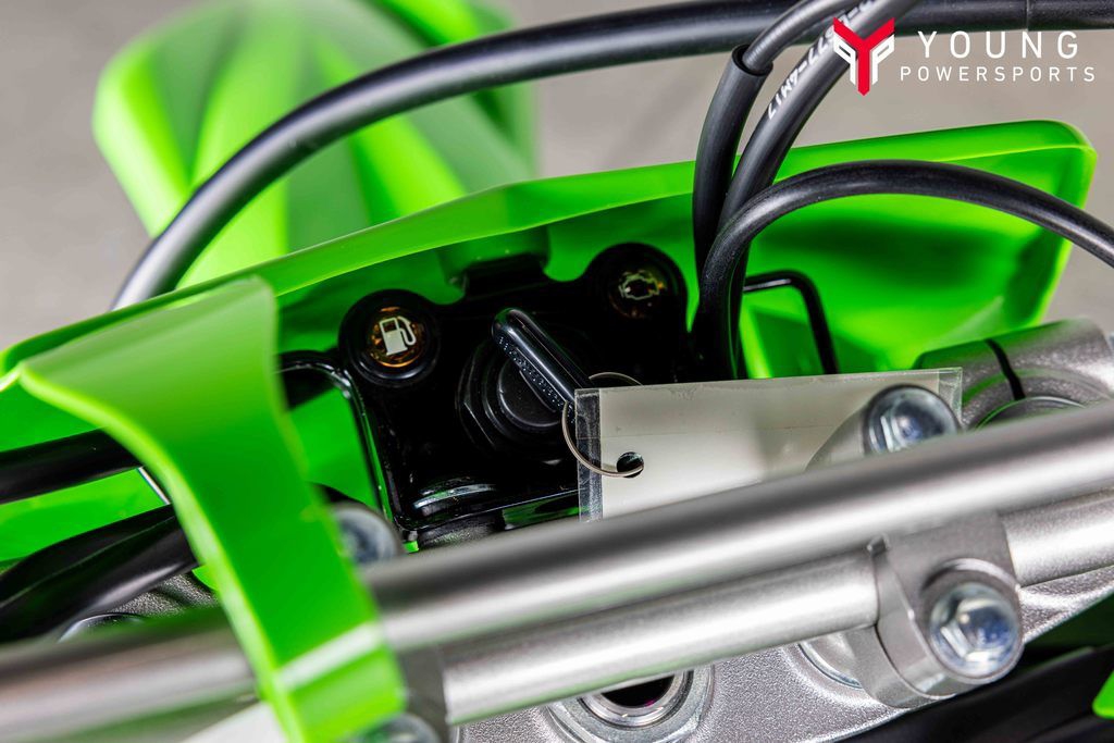 Be ready for whatever the trails throw your way. The KLX®230R off-road motorcycle takes rugged off-road capability and pairs it with convenient features that go the distance, including a keyed ignition, key-operated fuel tank cap, and a large fuel tank.