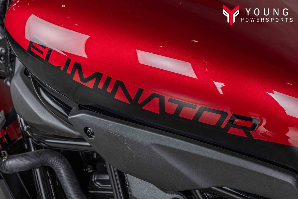 AUTHENTIC MOTORCYCLE DESIGNThe long, low design with elegant proportions of the Eliminator® motorcycle is created by the vertically thin fuel tank and the horizontal lines from the head pipe to the tail. The design of the impressive, mid-class-size body suggests a balance of active performance and composure.