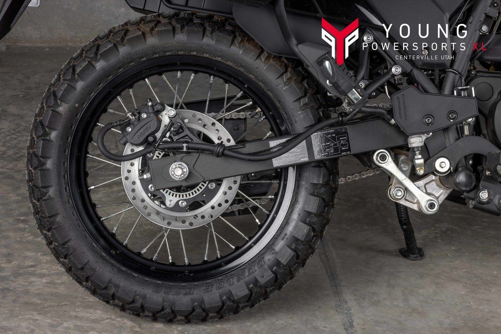 Ride confidently through varying terrain with a durable chassis and long-travel suspension. A sturdy 41mm fork handles suspension duties up front and an adjustable Uni-Trak® rear suspension system helps the KLR®650 motorcycle deliver an all-around composed riding character while front and rear disc brakes help you stop with confidence.