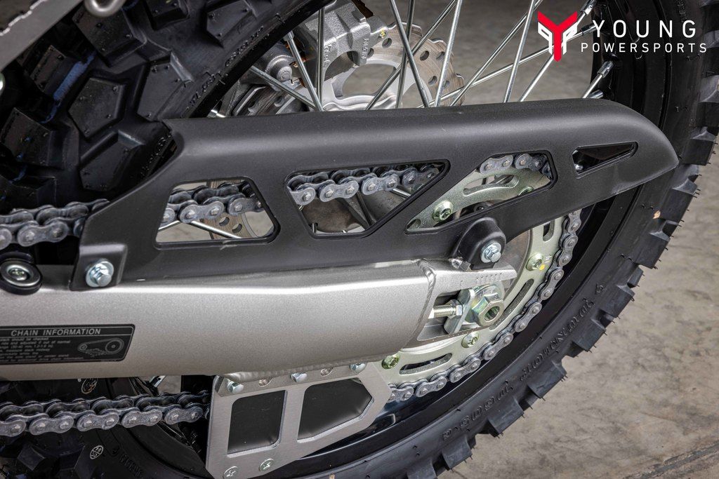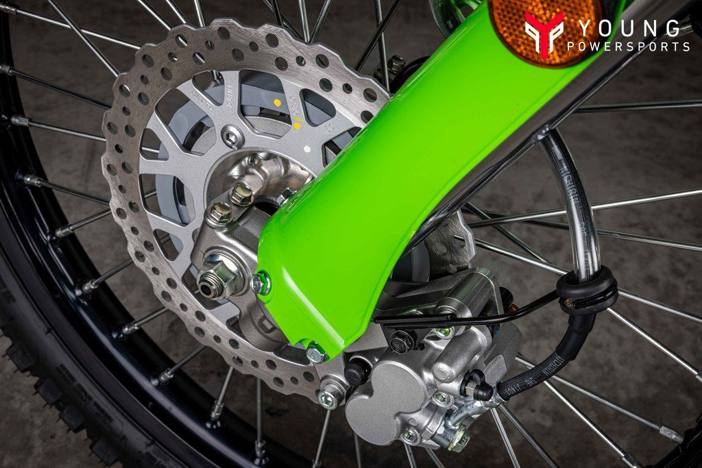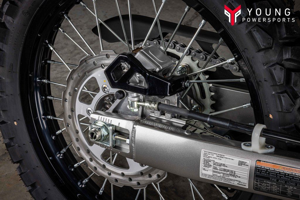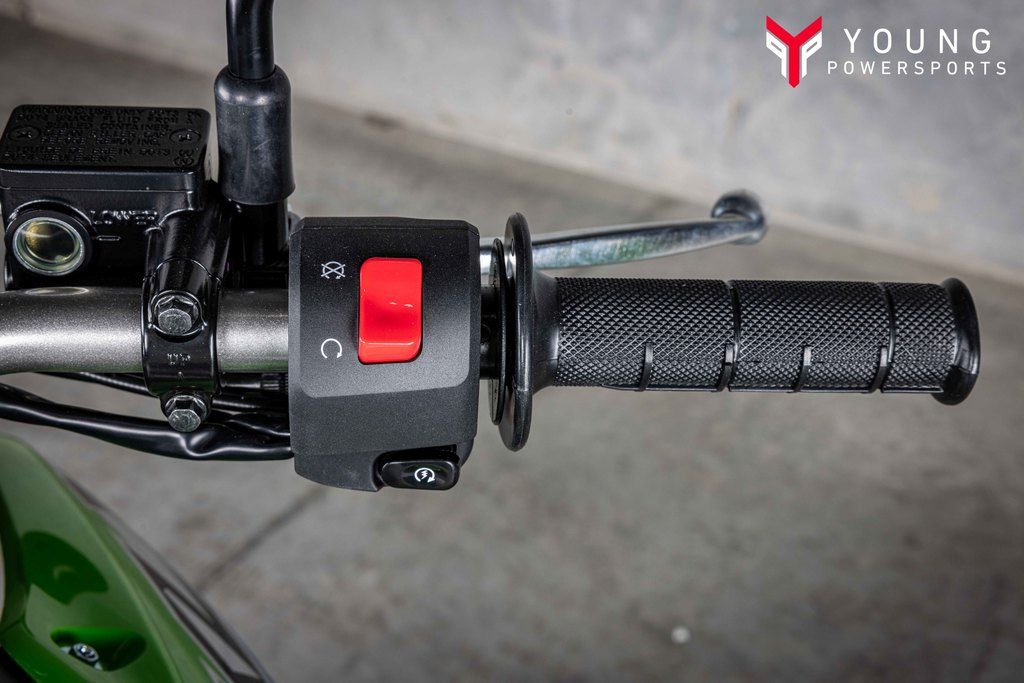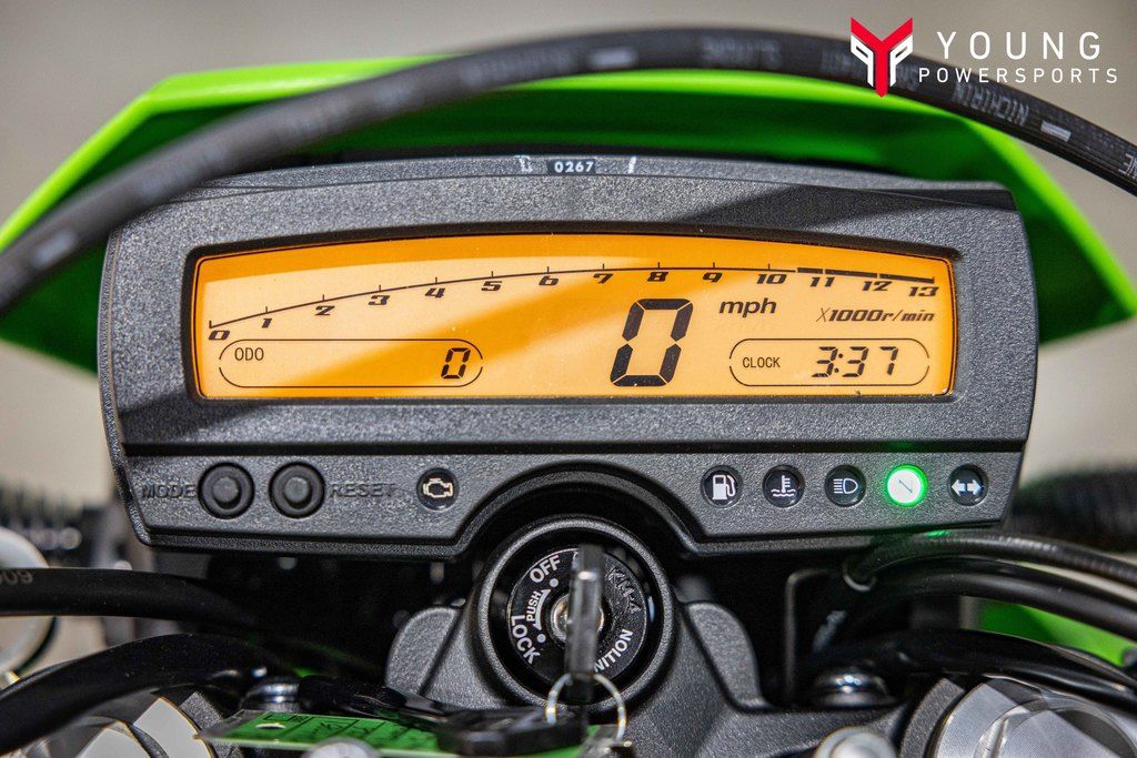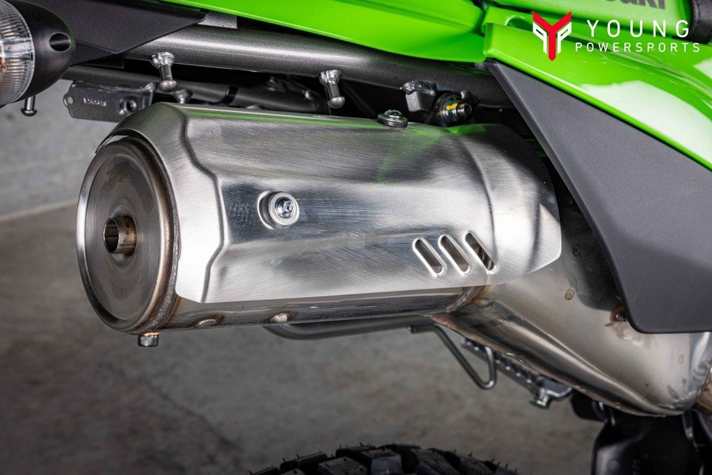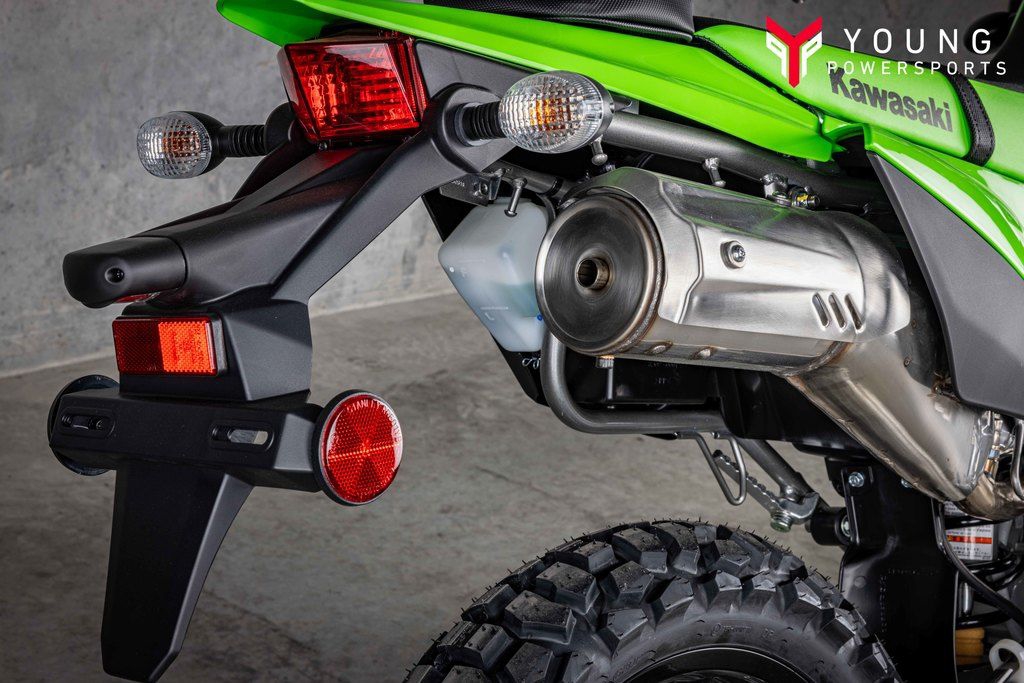 Features may include: POWER AND PERFORMANCE At the heart of the KLX®300 ultimate lightweight dual-sport, is an enduro-inspired 292cc engine, fuel-injected and liquid-cooled for consistent performance even when the action heats up. This DOHC 4-stroke engine boasts a strong low- and mid-range, with exhilarating top-end pulling power. Power delivery is smooth and throttle response is crisp throughout the rpm range making this the ideal machine for a variety of riding situations. For added comfort especially in heavy traffic, the innovative radiator fan directs hot air down and away from the rider, improving rider comfort. Electric start offers easy starting; fuel injection helps with reliable starting in a wide range of conditions and contributes to improved fuel economy. The KLX®300 highly versatile motorcycle exhibits agile maneuverability whether on- or off-road thanks to a slim, lightweight perimeter frame. The caster angle (26.7°) and short wheelbase contribute to quick handling, while the high rigidity of the frame ensures straight-line stability. Long-travel suspension is trail-tuned and offers 10 in of travel up front and 9.1 in in the rear. The 43mm inverted cartridge-style front fork has adjustable compression damping to optimize fork performance for conditions and personal preference. The Uni-Trak® rear suspension offers bump absorption, compression and rebound damping adjustability, and fully adjustable preload, allowing riders to tailor shock settings to personal preference. Substantial braking power comes from a powerful 250mm petal disc and twin-piston caliper up front and a 240mm petal disc and single-piston caliper in the rear. Strong dual-sport performance is further enabled with a 21-in front wheel and 18-in rear wheel. Wheel rigidity contributes to light, smooth handling and offers great durability for off-road riding. The KLX®300 dual-sport’s rider-friendly ergonomics closely align with the KLX®300R off-road motorcycle, offering an upright and relaxed riding position. Footpegs are positioned closer to the bike’s centerline for optimal riding comfort during on- and off-road excursions. Complementing adventure capabilities is a thick-padded seat that provides comfort on longer rides, while the 35.2-in seat height allows riders to comfortably reach the ground at stops for added confidence. The shroud design allows smooth transitions when shifting, enabling riders to feel more at one with their machine when cornering.