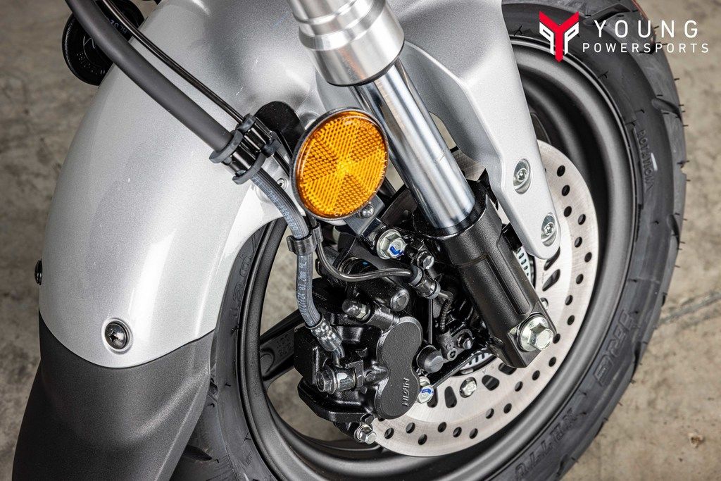 Twin rear shocks keep the retro vibe strong. Along with the fat 12-inch tires, they give you a smooth ride too, even over gnarly pavement.