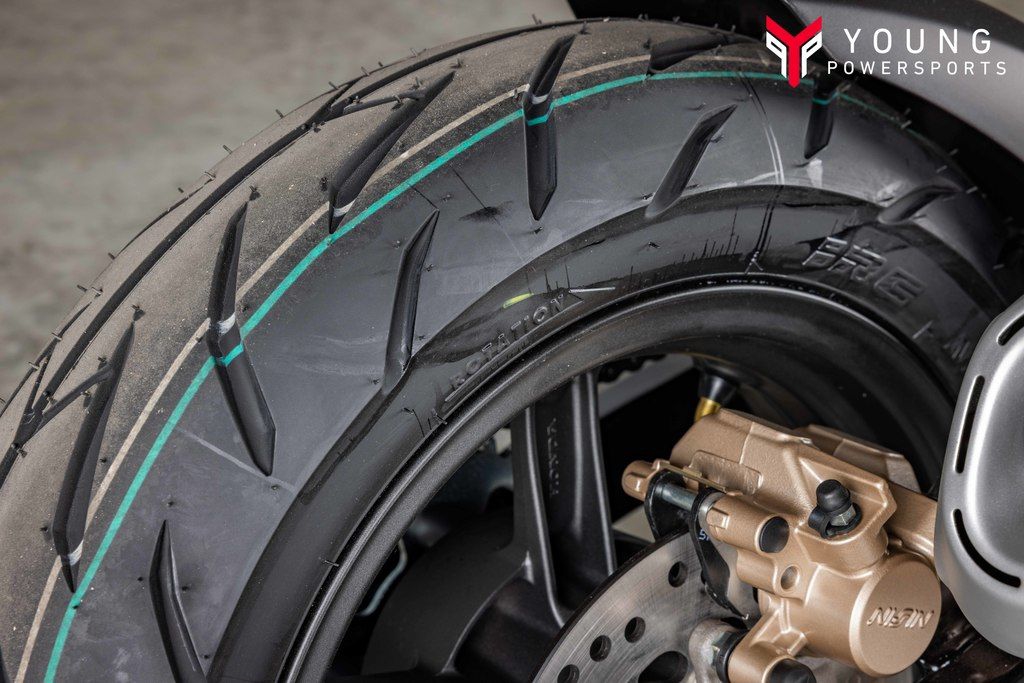 • Rear Tire (Full Spec): Vee Rubber: 130/70-12 56L