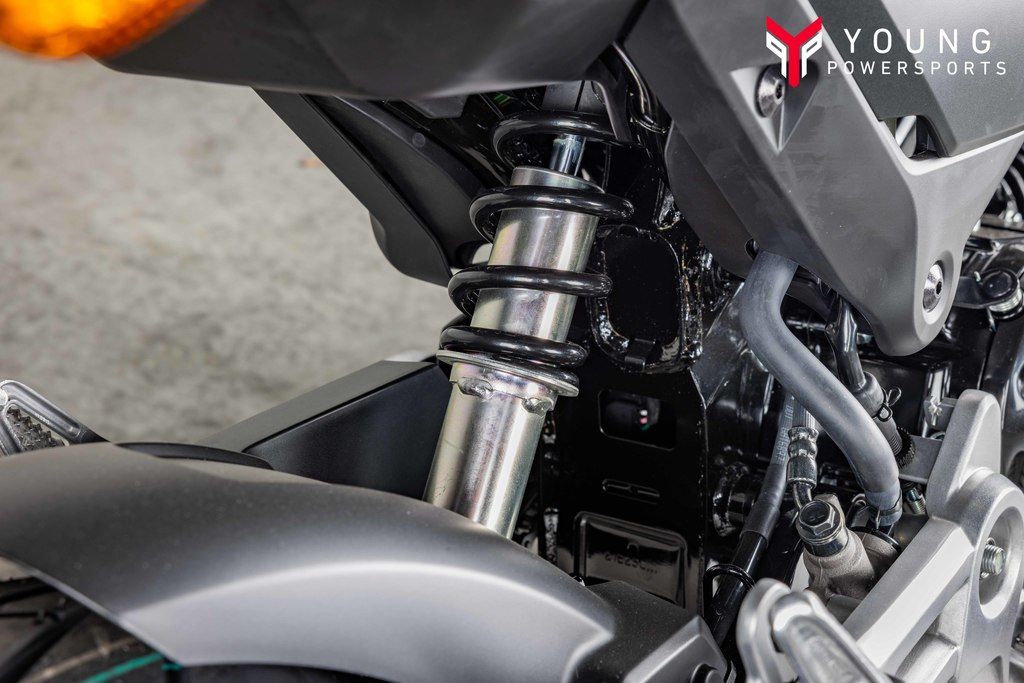 Like a top-of-the-line sportbike, this miniMOTO features an inverted hydraulic fork front suspension, designed for increased control and road feel.