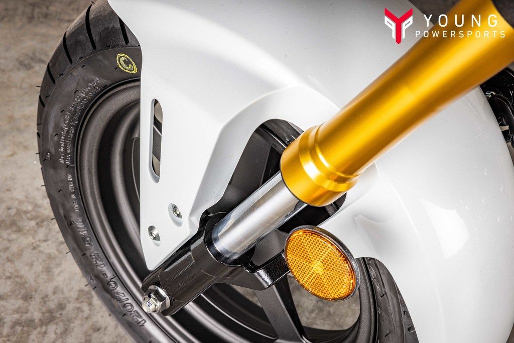 Like a top-of-the-line sportbike, this miniMOTO features an inverted hydraulic fork front suspension, designed for increased control and road feel.