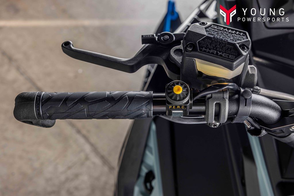 The Matryx RMK platform includes a narrow seat, tank and console that provide improved rider connection to the sled while the narrow bodywork enables more agility and less drag in the snow. The new seat design and running boards further improves rider mobility on the sled while the new throttle system helps you feel connected to the sled on every ride.