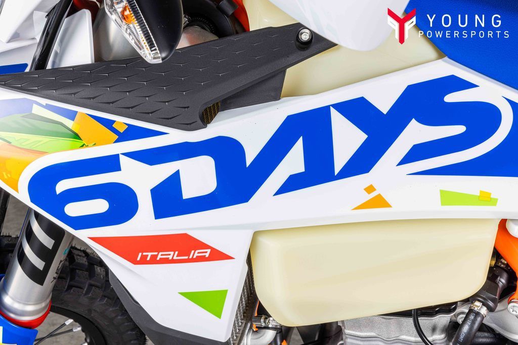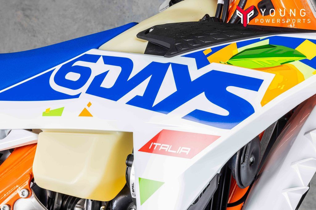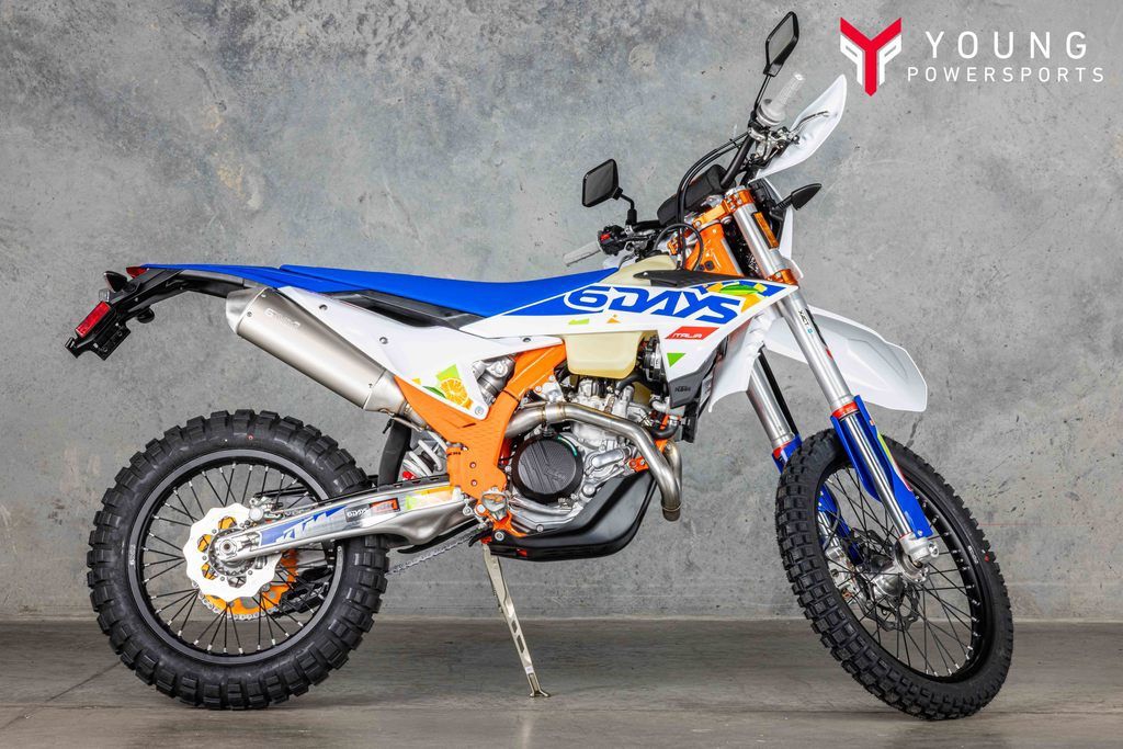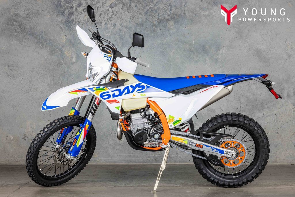 Few machines can hold their own against the KTM 500 EXC-F 6DAYS. Power, torque, unmatched handling, and pure 4-stroke fury puts this dual-sport weapon in a class all of its own. Packing a punch, complete with closed-cartridge suspension, and an electronics package that puts its rivals to shame, the KTM 500 EXC-F 6DAYS is ready to take on any challenge.
