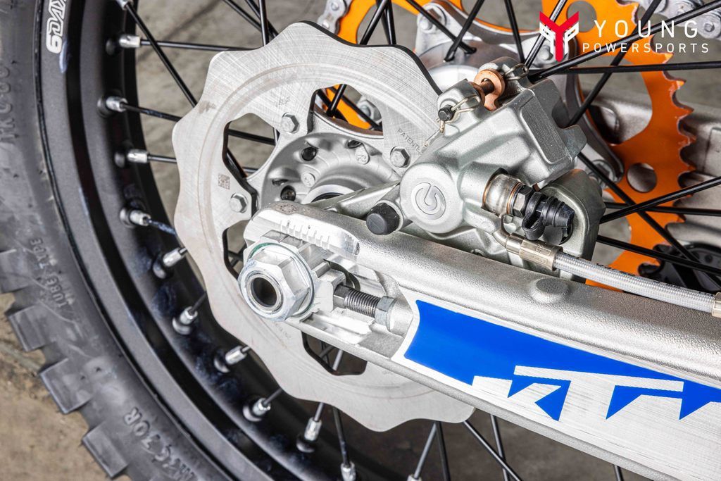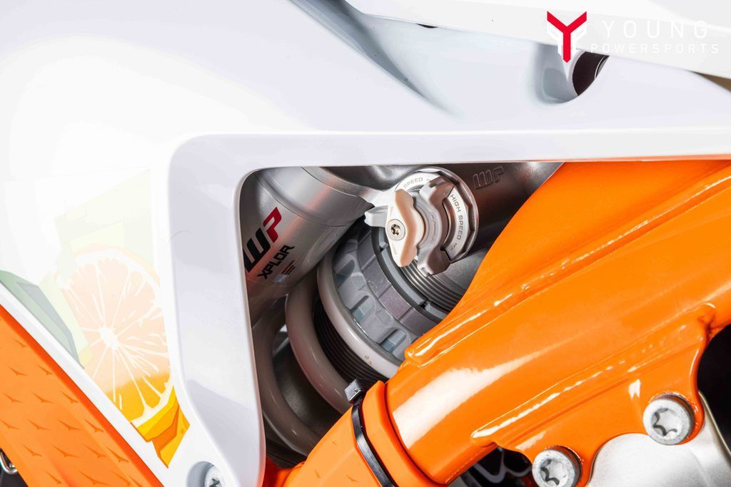 Setting the SagGetting READY TO RACE has never been easier. The KTM EXC-F range boasts a tool-free suspension setup at both ends. At the rear, our legendary, race-winning PDS technology features hand-adjustable dual compression controls, allowing riders to adjust high- and low-speed settings in a matter of seconds. On the front, the forks are also easily adjusted thanks to hand-adjustable clickers on the bottom of the fork shoe and on the fork top cap, making changing settings on the fly as easy as twisting the throttle.