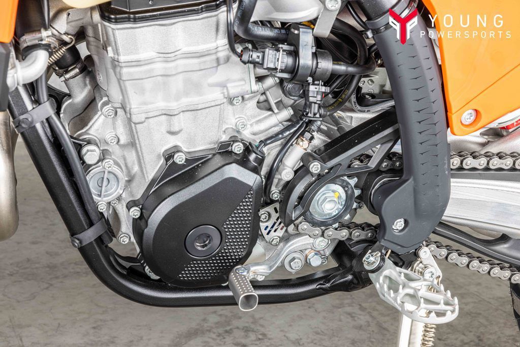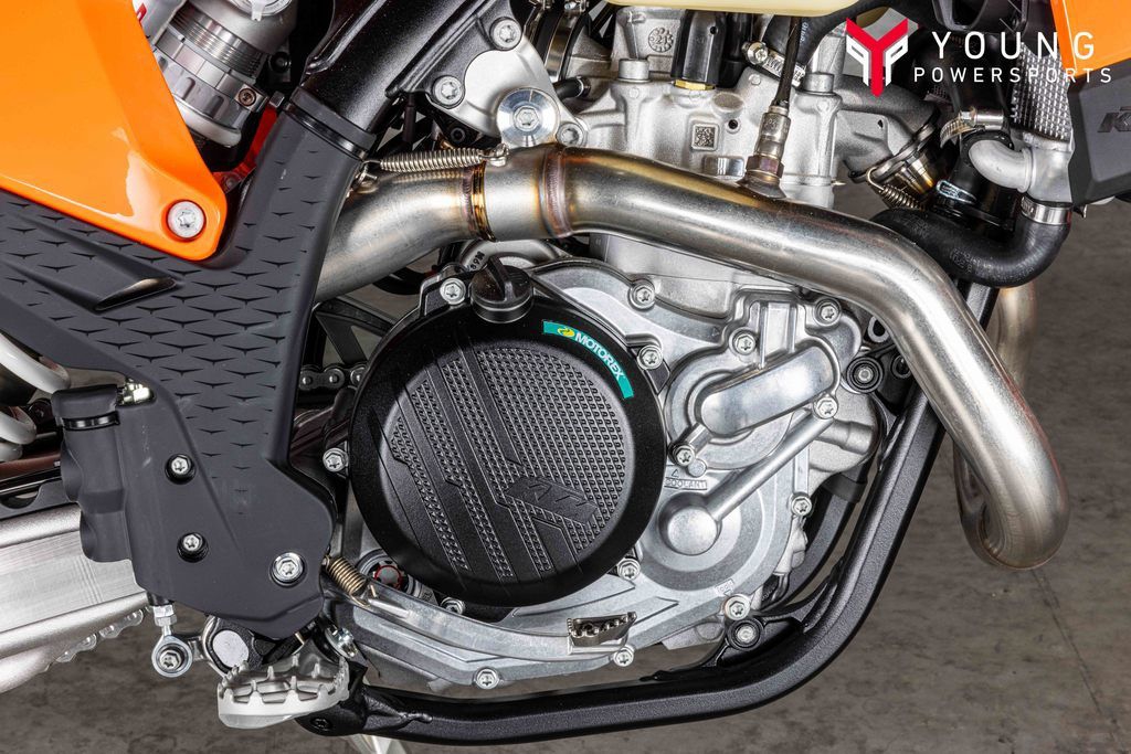 Benchmark lap?Warp speed engaged! The ?SOHC engine in the KTM 500 EXC-F is an undeniable powerhouse. Weighing in at a mere 65 lb (29.5 kg), it's remarkably lightweight for its power output. Designed with mass centralization in mind, this hard-hitting power factory features a low center of gravity, providing exceptional handling, maneuverability, and overall anti-squat behavior.