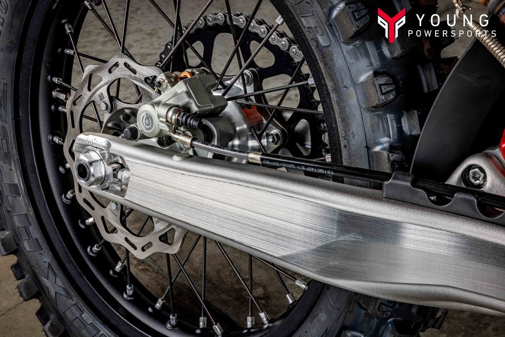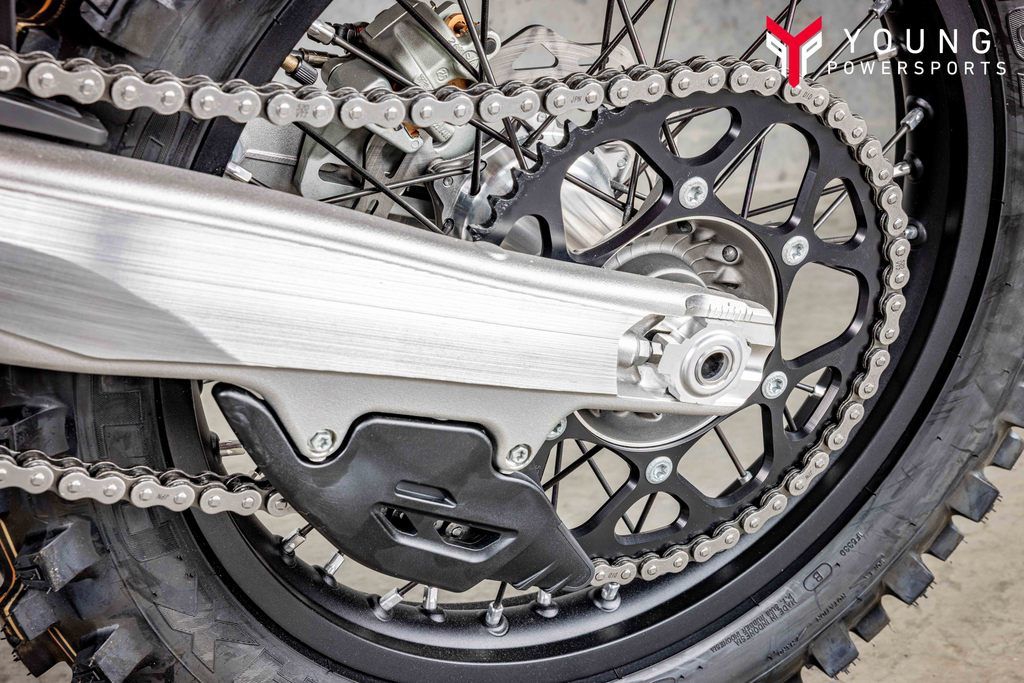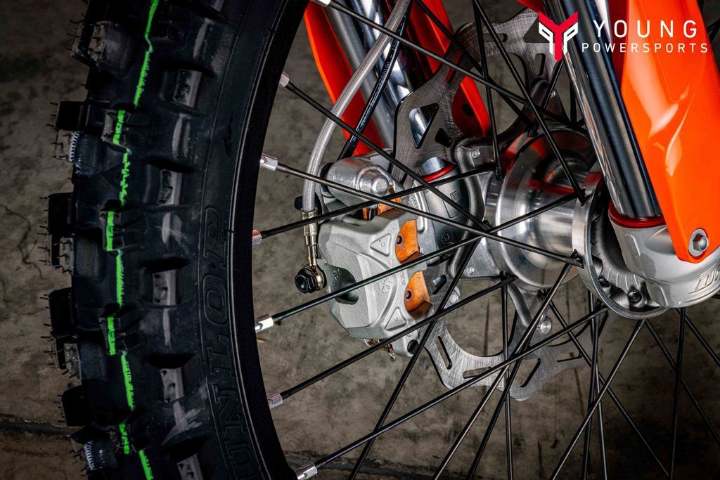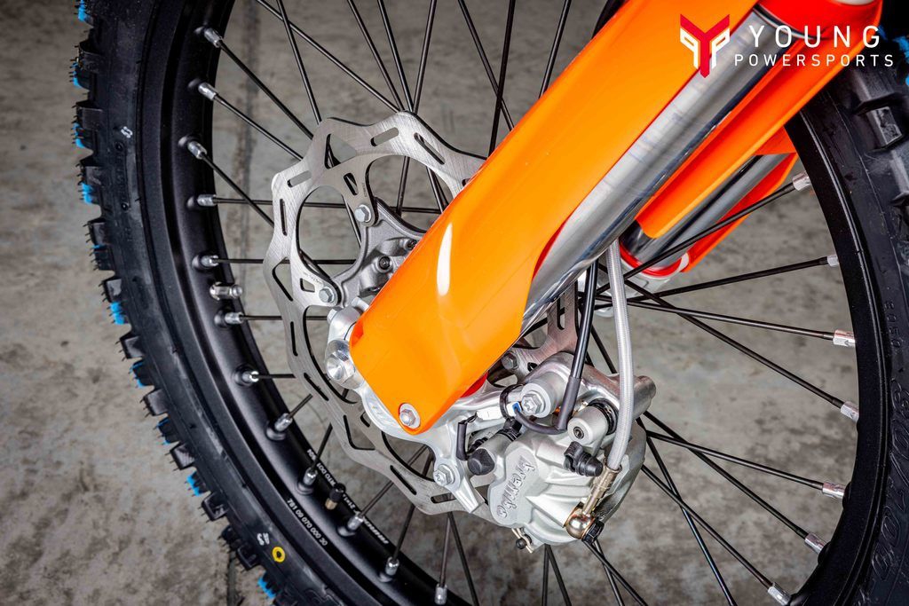 Keeping you goingThe KTM 450 XCF-W remains rock-solid at any speed thanks to a repositioned and forged steering head connection and CNC-milled triple clamps. Made from high-grade aluminum, these feature optimally tuned steering stem stiffness, perfect alignment of the fork tubes, and precise geometry of the fork clamps to ensure highly responsive and smooth fork action - not to mention unwavering stability for those ultra-fast flat-out special stages.
