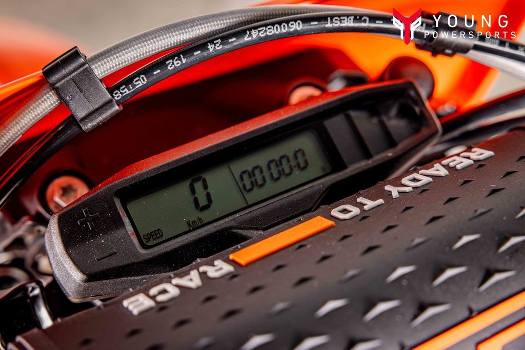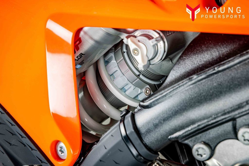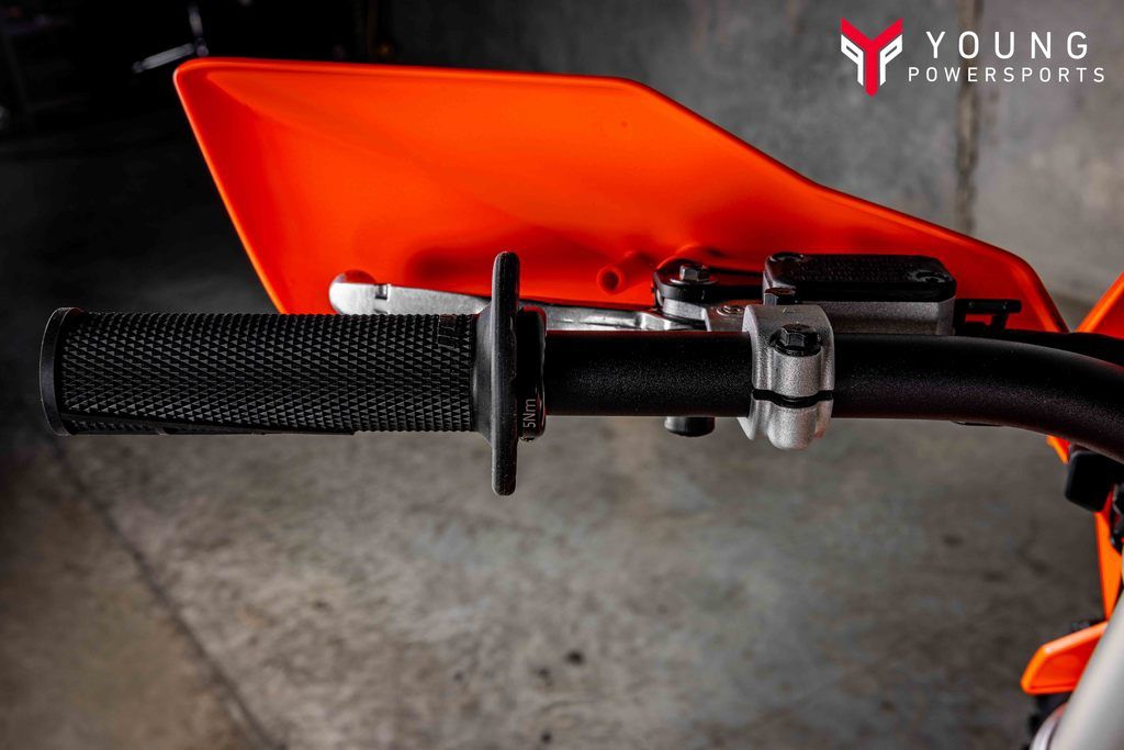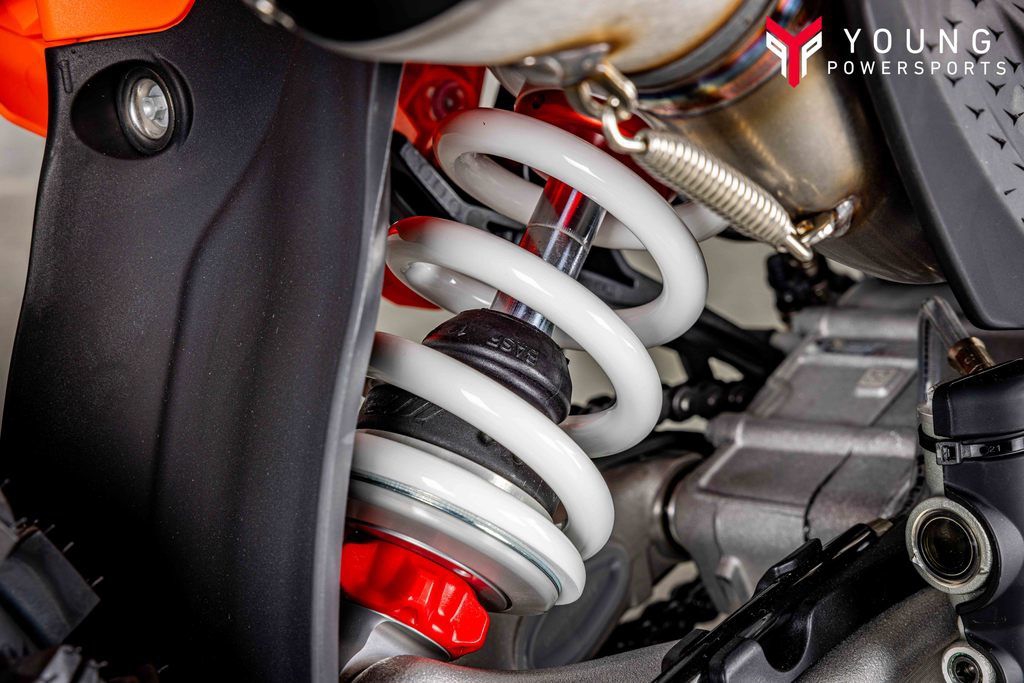 Preparation makes PerfectGetting READY TO RACE has never been easier. The KTM 450 XCF-W boasts a tool-free suspension setup at both ends. At the rear, our legendary, race-winning PDS technology features hand-adjustable dual compression controls, allowing riders to adjust high- and low-speed settings in a matter of seconds. On the front, the forks are also easily adjusted thanks to hand-adjustable clickers on the bottom of the fork shoe and on the fork top cap, making changing settings on the fly as easy as twisting the throttle.