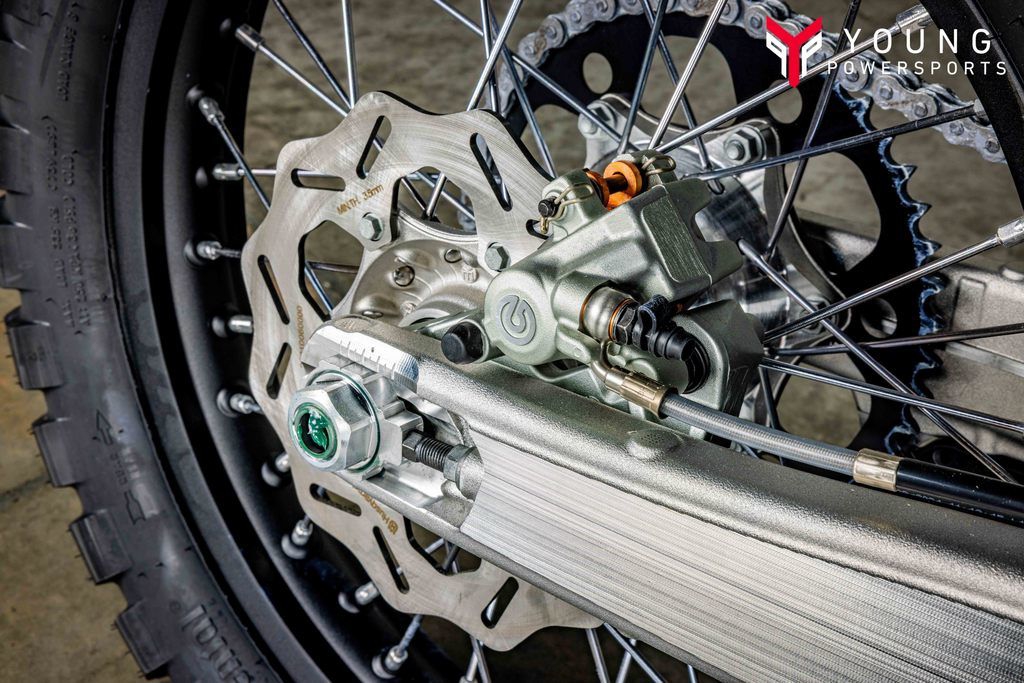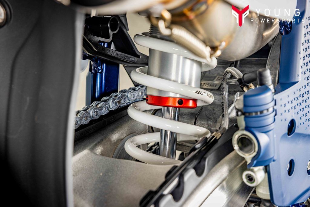 State-of-the-art chassisA proven chromium molybdenum steel frame ensures straight-line stability at speed without sacrificing agility through the slow and technical sections. Optimized wall thickness throughout the chassis aids durability, in addition to providing unparalleled rider feedback and energy absorption. For an optimized level of anti-squat behavior and overall chassis balance, the shock is not directly connected to the main tube. The frame is complete with a premium metallic blue powder coating with frame protectors offering improved grip in all conditions.