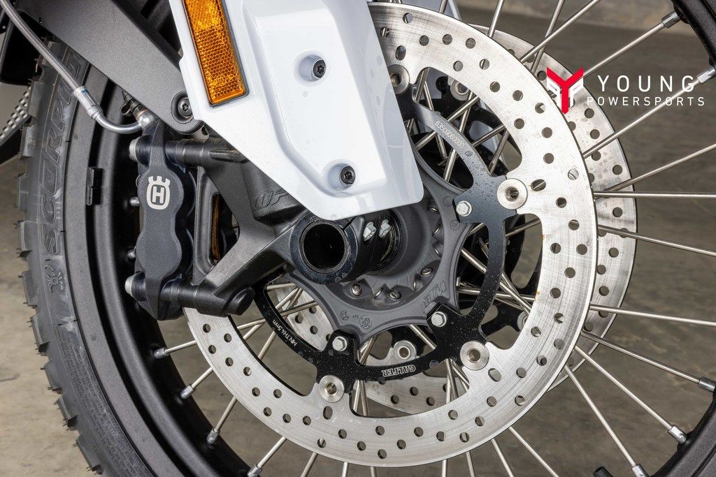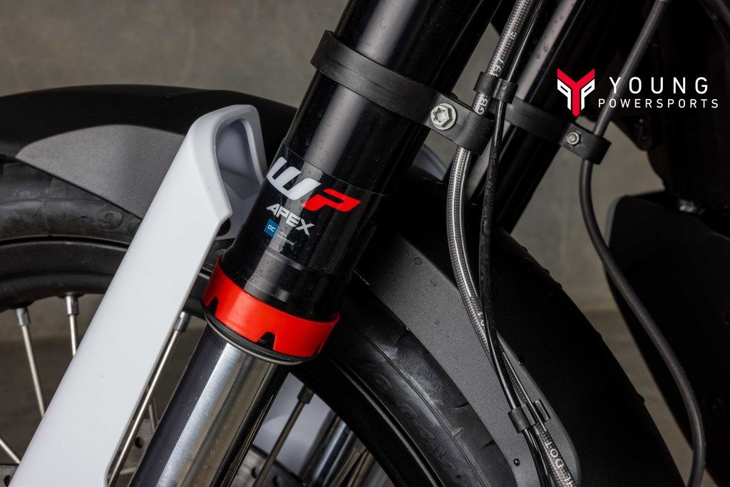 Trustworthy equipmentControl and comfort are essential throughout every long distance adventure. At the front end of the Norden 901, WP APEX 43 mm forks offer 220 mm of travel for exceptional damping across the roughest terrain, with the compression and rebound easily adjustable for a personalized set-up. The same settings can be fine-tuned on the WP APEX rear shock in addition to the preload for maximum comfort, with travel set at 215 mm for a perfect balance and superior handling.