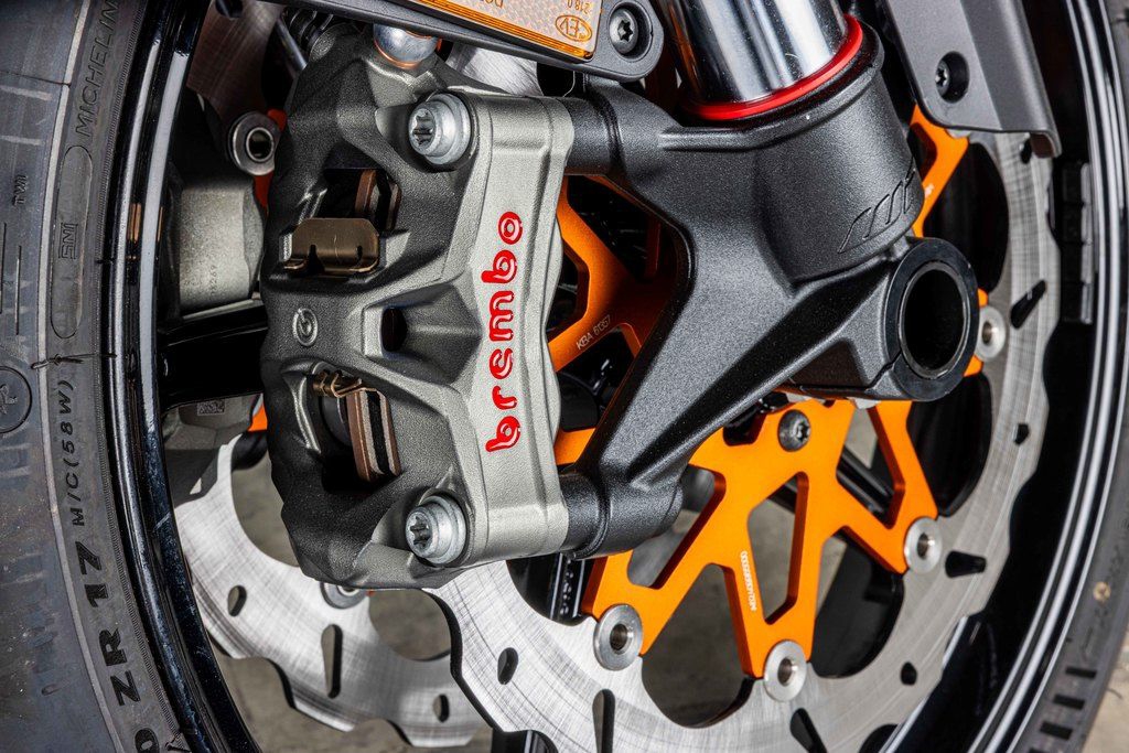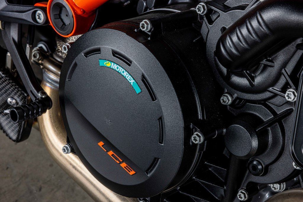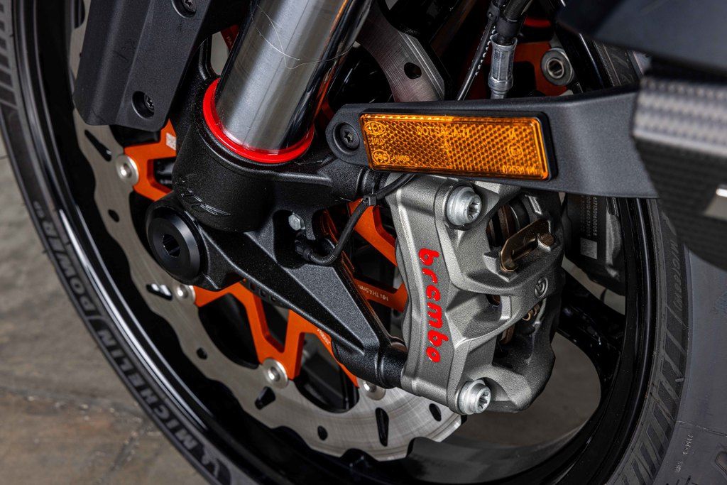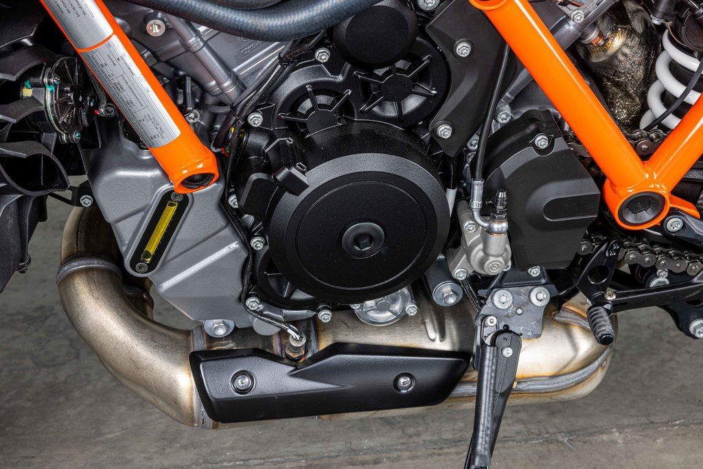 Control of the motorcycleThe frame uses the engine as a means to increase torsional rigidity, making the KTM 1390 SUPER DUKE R EVO extremely precise. This allows for an effortless, confidence-inspiring riding position, translating into an ultimately faster ride. This is achieved by maximizing the feedback from the chassis and the front tire. The frame also makes use of thick-diameter tubes with thin walls for optimal stiffness and weight.