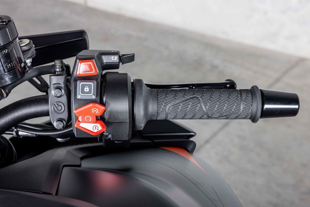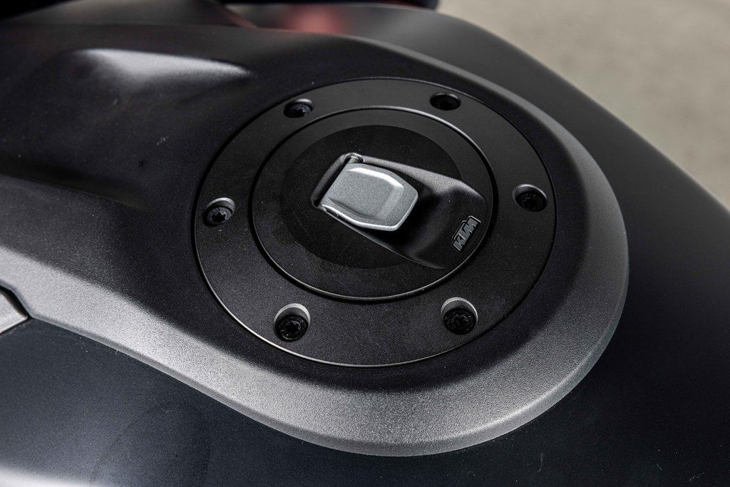FUEL AND FUNCTIONLet's not mince words. The KTM 1390 SUPER DUKE R EVO is a 100% hardcore and dominant performance machine. For that reason, it is ergonomically styled for sporty riding. The tank is angled slightly outwards, providing more support under braking, as well as better contact while knee down. The handlebar is also lower for improved control without compromising comfort.