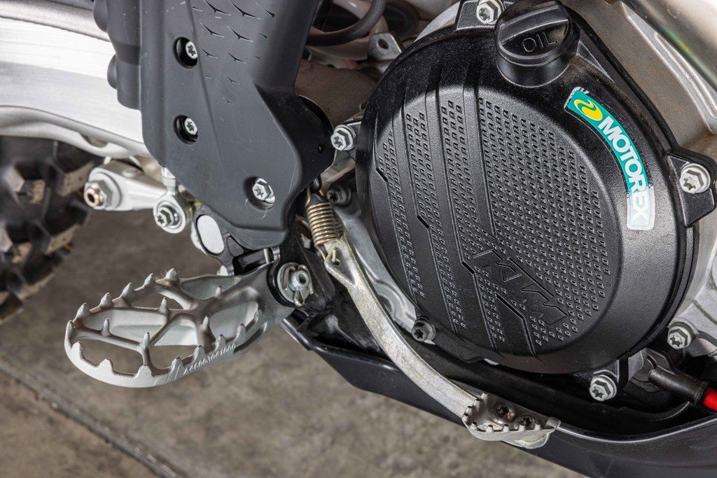 CORNER ON RAILSNo matter how gnarly the trail is, you'll stay in control thanks to a rider-focussed frame design that has not only been engineered for longitudinal rigidity, but also positions rotating mass as close as possible to the center of gravity. Thick frame walls also improve reliability, flex characteristics and offer unmatched rider feel. The shock mounting also provides the perfect amount of anti-squat for better traction out of corners, while the footpeg mounting position reduces the risk of hooking up on roots or rocks. Additionally, forged brackets on the lower frame rails allow for easy installation of the skid plate.