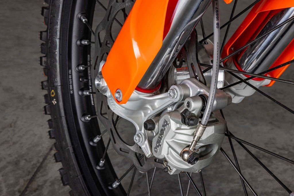 CLICK INTO ACTIONThe 2025 KTM XC and XC-F range took their already awesome suspension package and turned it up to 11. The WP XACT Closed Cartridge spring forks and WP XACT rear shock has been updated, with reworked settings and alterations to improve weight distribution and increase overall response. As always, the suspension boasts an easy tool-free setup at both ends, ensuring you chase down the podium in total control. On the rear, a hand-adjustable dual compression control allows riders to adjust high- and low-speed settings in a matter of seconds. The forks on the front end are also easily adjusted thanks to hand-adjustable clickers on the bottom of the fork shoe and top cap.