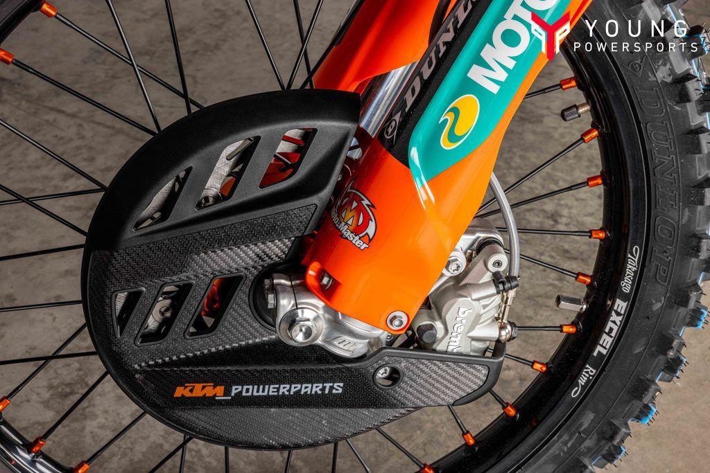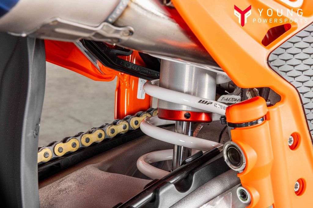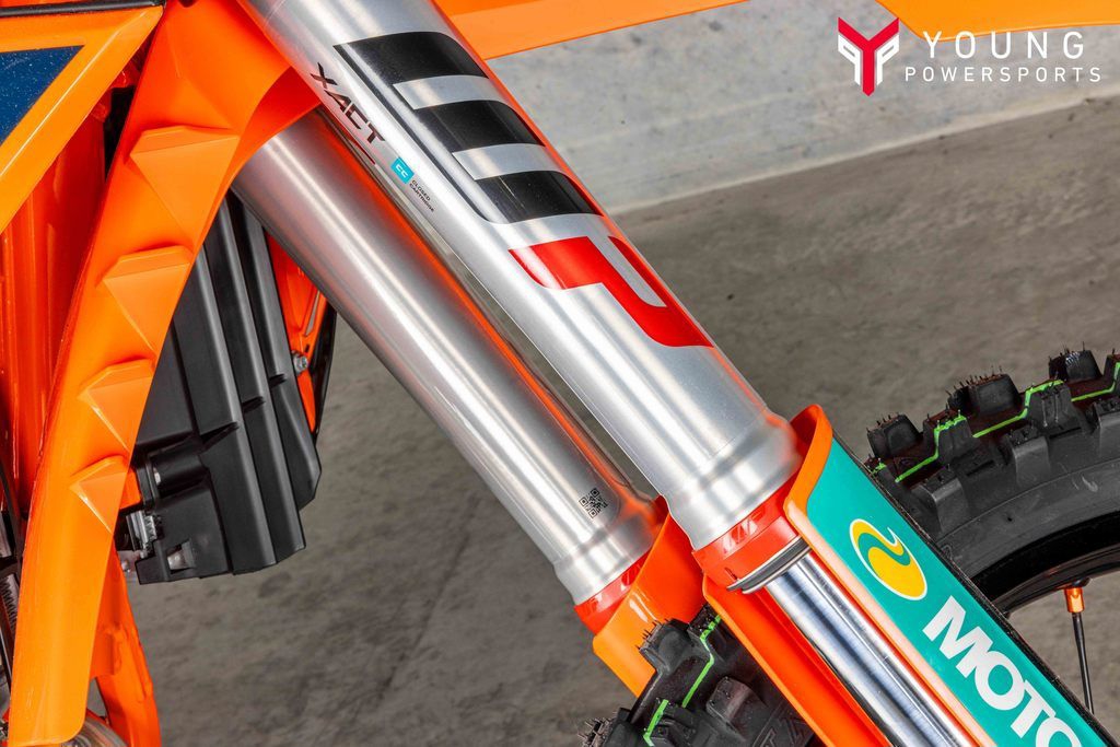 The KTM XC-F has taken its already awesome suspension package and turned it up to 11. The WP XACT Closed Cartridge spring forks and WP XACT rear shock feature settings to improve weight distribution and increase overall response. As always, the suspension boasts easy, tool-free setup at both ends, ensuring you chase down the podium with total control. On the rear, a hand-adjustable dual compression control allows riders to adjust high- and low-speed settings in a matter of seconds. The forks on the front end are also easily adjusted thanks to hand-adjustable clickers on the bottom of the fork shoe and top cap.
